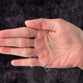 14 Ayar Altın Göz Sıralı Kolye