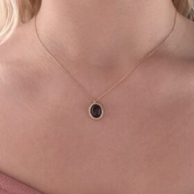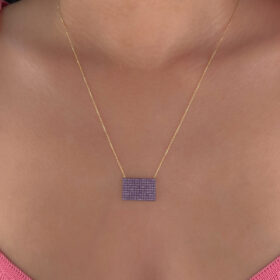 14 Ayar Altın Ametist Taşlı Dikdörtgen Kolye