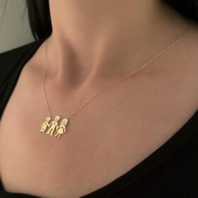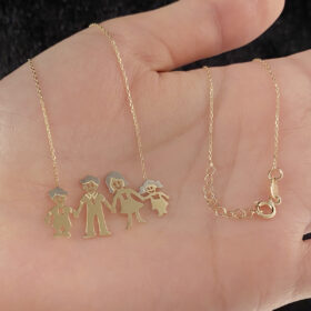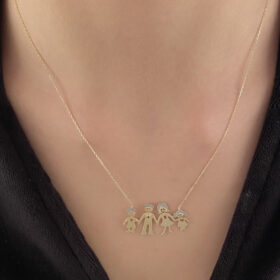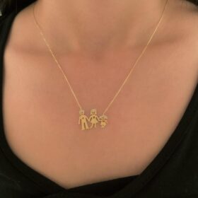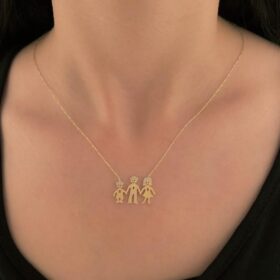 14 Ayar Altın Anne Baba Ve Çocuklar Aile Kolyesi