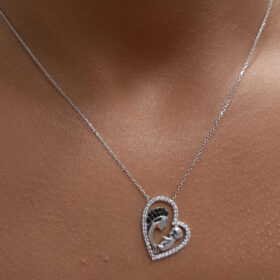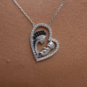 14 Ayar Altın Anne Bebek Figürlü Kalpli Kolye