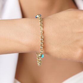 14 Ayar Altın İnce Üç Göz Detaylı Doch Bileklik