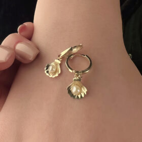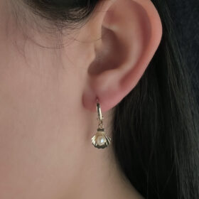 14 Ayar Altın İnci Detaylı İstiridye Küpe