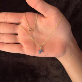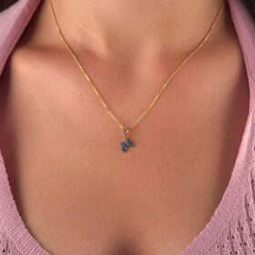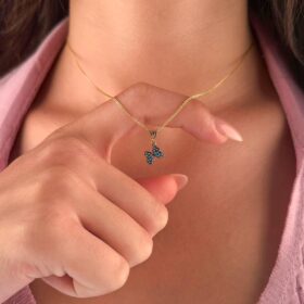 14 Ayar Altın İpek Zincir Firuze Taşlı Kelebek Kolye