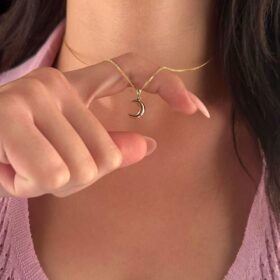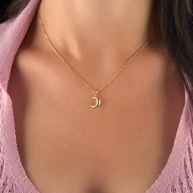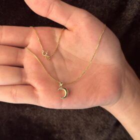 14 Ayar Altın İpek Zincir Hilal Ay Uçlu Kolye