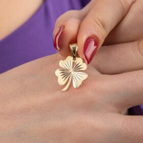 14 Ayar Altın Işıltılı Midi Yonca Kolye Ucu