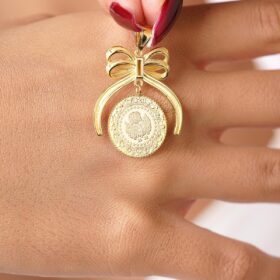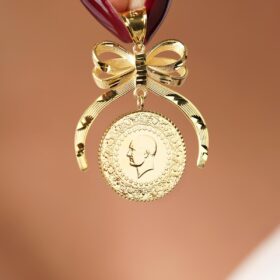 14 Ayar Altın Kalem İşlemeli Fiyonklu Çeyrek Altın Kolye Ucu