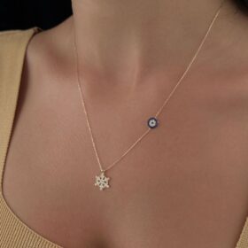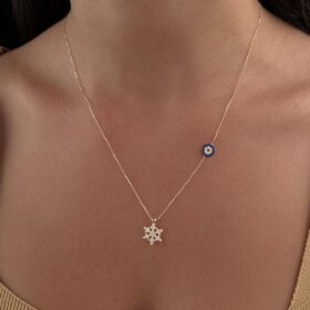 14 Ayar Altın Nazarlık Detaylı Kar Tanesi Kolye