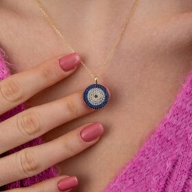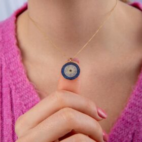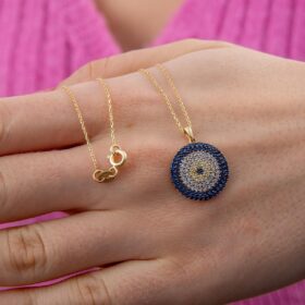 14 Ayar Altın Nazarlık Kolye Ayetel Kürsi Yazılı Kolye 18 mm