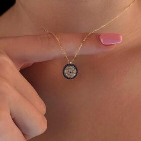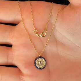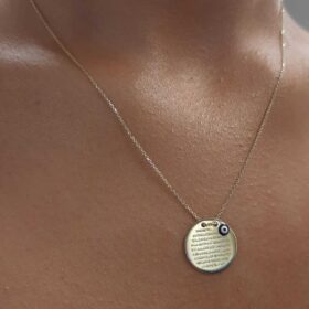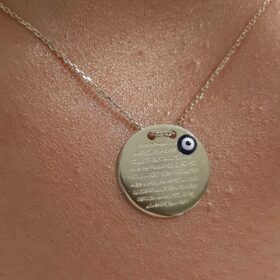 14 Ayar Altın Nazarlık Kolye Ayetel Kürsi Yazılı Kolye 26 mm