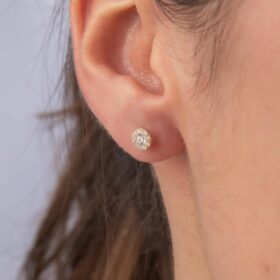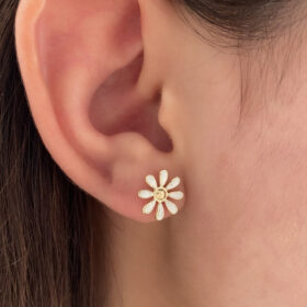 14 Ayar Altın Papatya Desenli Taşlı Küpe