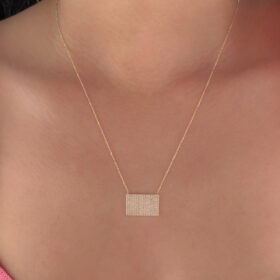 14 Ayar Altın Pembe Kuvars Taşlı Dikdörtgen Kolye