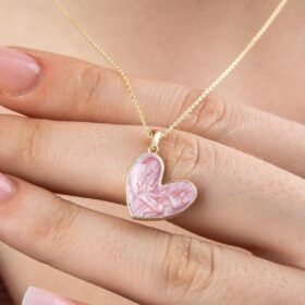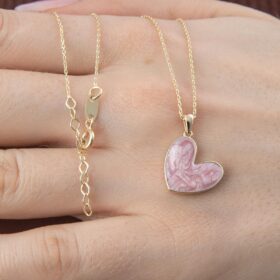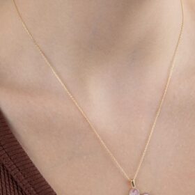 14 Ayar Altın Pembe Mineli Kalp Kolye