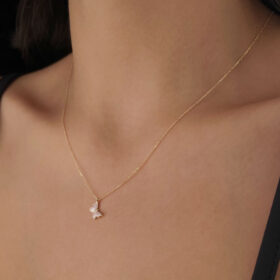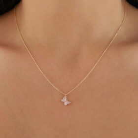 14 Ayar Altın Pembe Mineli Kelebek Kolye