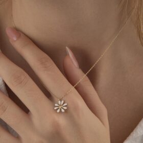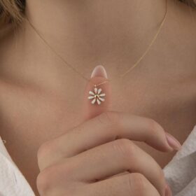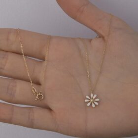 14 Ayar Altın Papatya Montürlü Eskitme Kolye