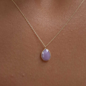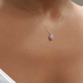 14 Ayar Altın Pembe Kuvars Damla Kolye