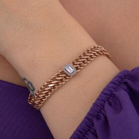 14 Ayar Altın Baget Taş Detaylı Örme Bileklik