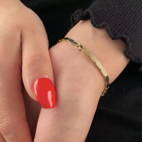 14 Ayar Altın Baget Siyah Taşlı Balıksırtı Bileklik