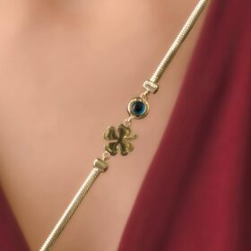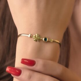 14 Ayar Altın Şans Yoncası ve Göz Detaylı İtalyan Balıksırtı Bileklik