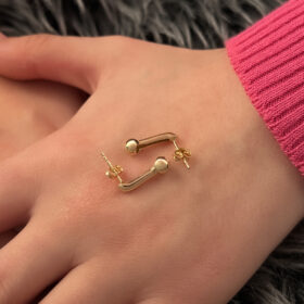 14 Ayar Altın Şerit Ucunda Top Küpe