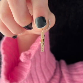 14 Ayar Altın Sarkıt Taş Detaylı Küpe