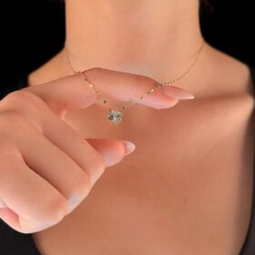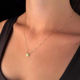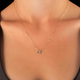 14 Ayar Altın Shine Yoncalı Aynalı Işıltılı Kolye