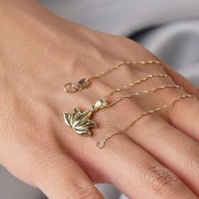 14 Ayar Altın Singapur Zincirli Büyük Lotus Kolye