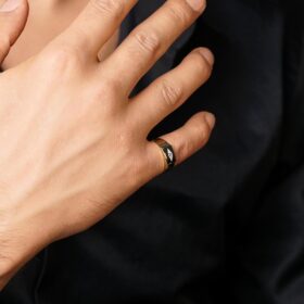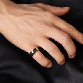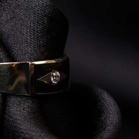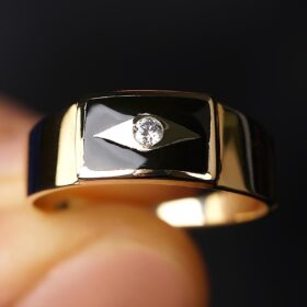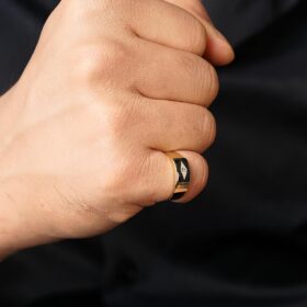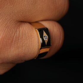 14 Ayar Altın Siyah Mineli Dikdörtgen Şövalye Yüzük Erkek