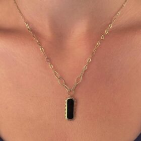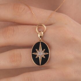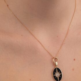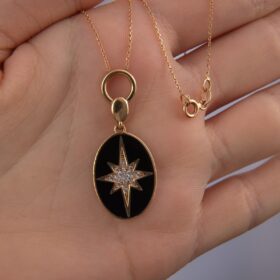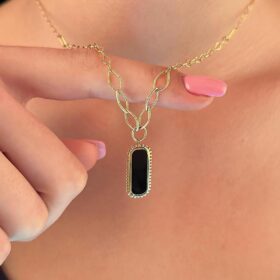 14 Ayar Altın Siyah Mineli Kuzey Işıltısı Kolye