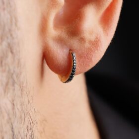 14 Ayar Altın Siyah Taşlı Süzme Erkek Halka Küpe