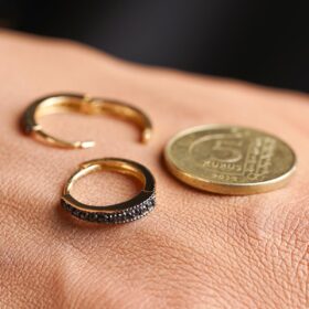 14 Ayar Altın Siyah Taşlı Süzme Halka Küpe