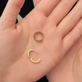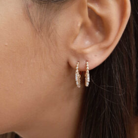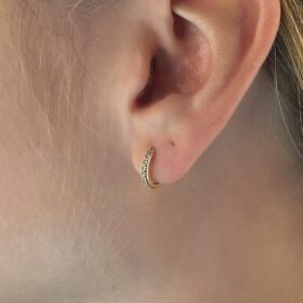 14 Ayar Altın Sıralı Taş Detaylı Mini Halka Küpe