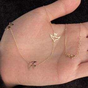 14 Ayar Altın Sıralı Kırlangıç Kolye