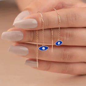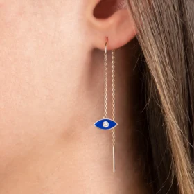 Cabaret Lacivert Mineli Göz Altın Küpe