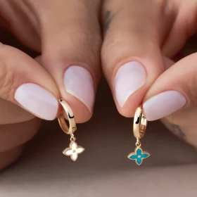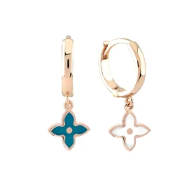 Cabaret Sallantılı Çiçekli Mineli Tek Altın Halka Küpe