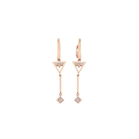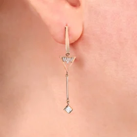 Karo Taş Sallantılı Üçgen Altın Küpe