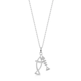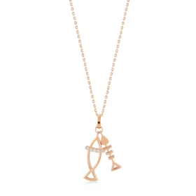 Stilize Çift Balık Figürlü Taşlı Altın Kolye