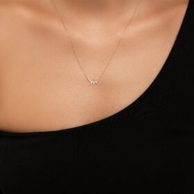 Tria Markiz Form Opalit ve Zirkon Taşlı Altın Kolye