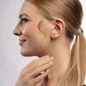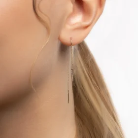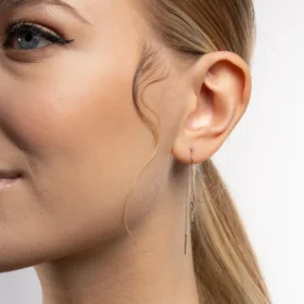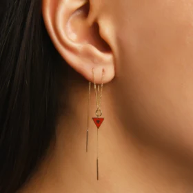 Üç Renk Sallantılı Zincir Tek Altın Küpe