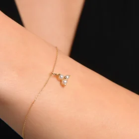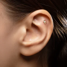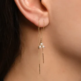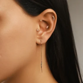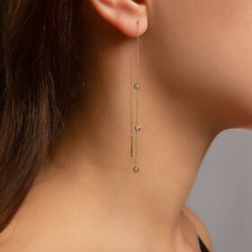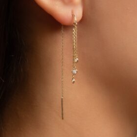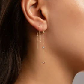 Üç Adet Taşlı Sallantılı Zincir Tek Altın Küpe
