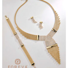 14 Ayar Altın Taşlı Kalze Set 39.6gr – Kolye Bileklik Küpe | FRV143