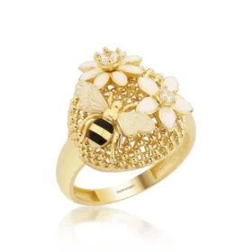 Bee Mine Altın Arı Çiçek Yüzük