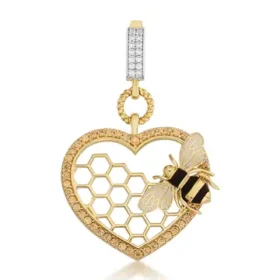Bee Mine Altın Arı Kalp Petek Kolye Ucu