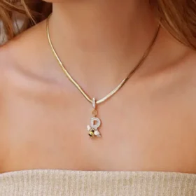 Bee Mine Altın Arı Taşlı R Harf Kolye Ucu