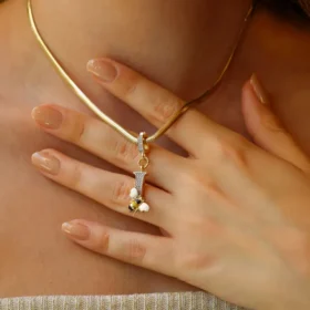 Bee Mine Altın Arı Taşlı Kolye Ucu