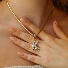 Bee Mine Altın Arı Taşlı K Harf Kolye Ucu