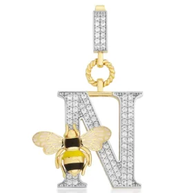 Bee Mine Altın Arı Taşlı N Harf Kolye Ucu