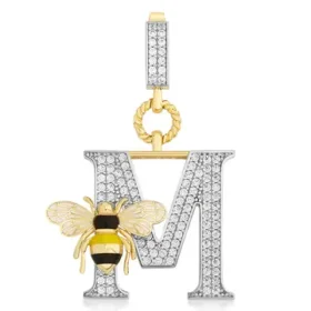 Bee Mine Altın Arı Taşlı M Harf Kolye Ucu
