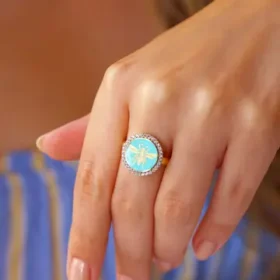 Bee Mine Altın Arı Turkuaz Mineli Yüzük