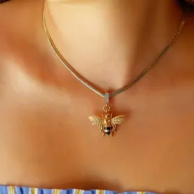 Bee Mine Altın Arı Turuncu Taşlı Kolye Ucu