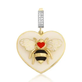 Bee Mine Altın Beyaz Kalp Kolye Ucu